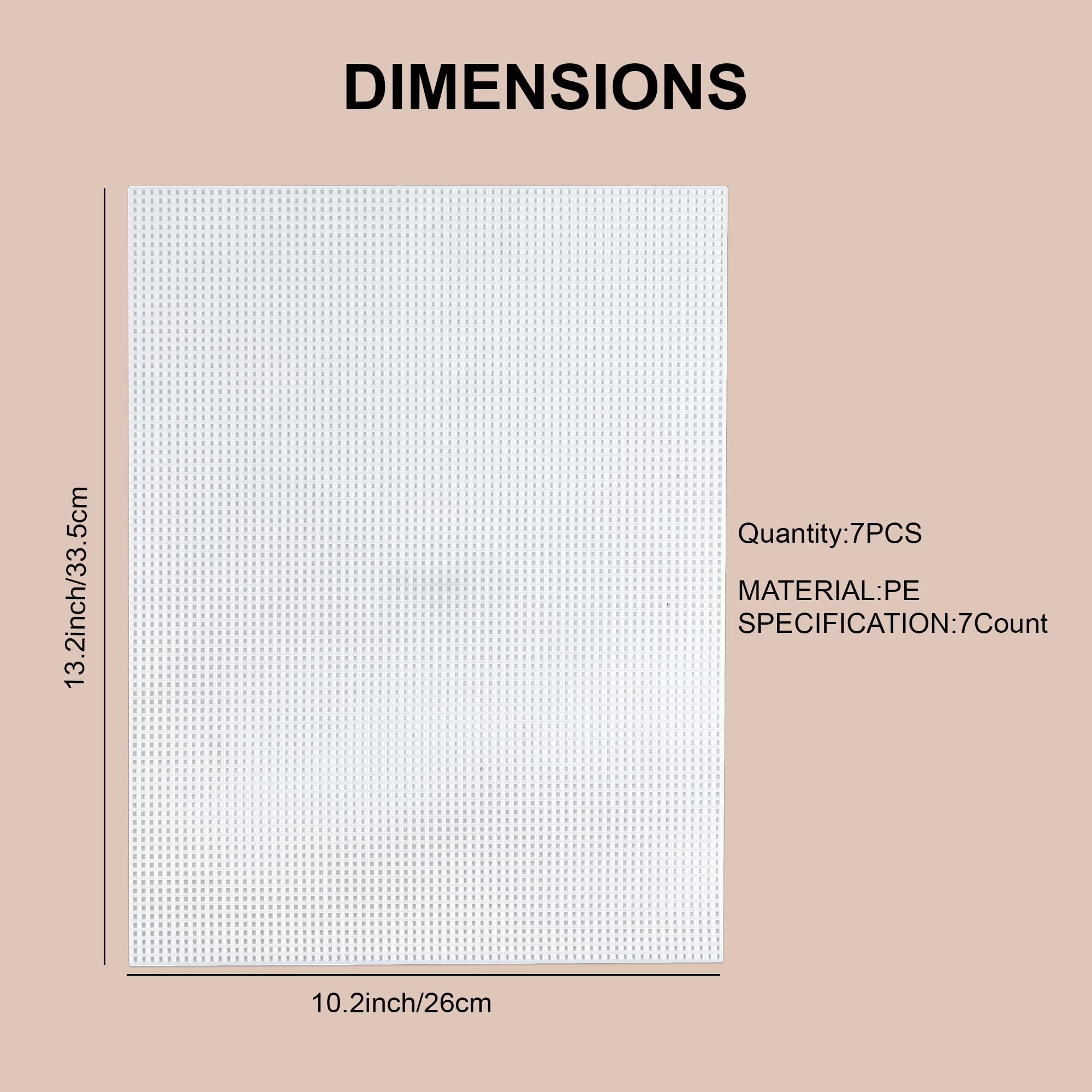 Package Include: 7 pieces of 7 count plastic mesh canvas and 5 weaving needles, each canvas sheet measuring 10.2 x 13.2 inches / 26 x 33.5 cm with 7 holes per inch@Durable PE Material: Made from high-quality PE material, the plastic canvas sheets offer strong plasticity. This ensures they maintain their shape and integrity during crafting, making them a reliable choice for long-term use@Easy to Cut: Plastic mesh sheets can be easily cut into any size or shape to meet any projects need, feel free to let your imagination run wild@Versatile Usage: Plastic canvas is smooth and flexible, suitable for a wide range of projects, including embroidery, knitting, crocheting and DIY fish tank dividers, eye mesh for mask, offering flexibility in creative pursuits@Suitable for All Skill Levels: With weaving needles and user-friendly design, these canvas sheets are suitable for both beginners and experienced crafters, supporting a variety of project complexities